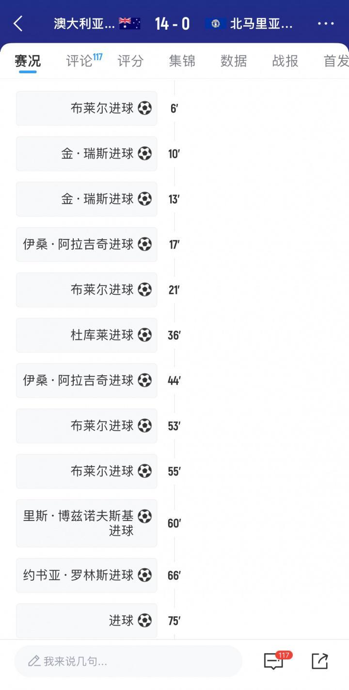 没眼看!澳大利亚半场轰北马里亚纳7球,国足补时才艰难打入首球 xiaoqiao 2026-01-13 英超 29 0 直播吧09月06日讯 U23亚洲杯预选赛第2轮,中国vs北马里亚纳群岛。上半场补时阶段,拜合拉木补射帮助球队打入第一球。预选赛第1轮,澳大利亚14-0狂胜北马里亚纳群岛,上半场,澳大利亚就狂轰7球。